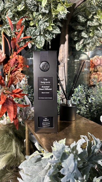 The Belgravia Black Orchid Reed Diffuser - Inspired by London’s most exclusive enclave, The Belgravia diffuser by The Chelsea Candle Company evokes the essence of understated glamour. Notes of exotic black orchid mingle with dark woods and creamy vanilla. 100ml. Lasts up to 3 hours.